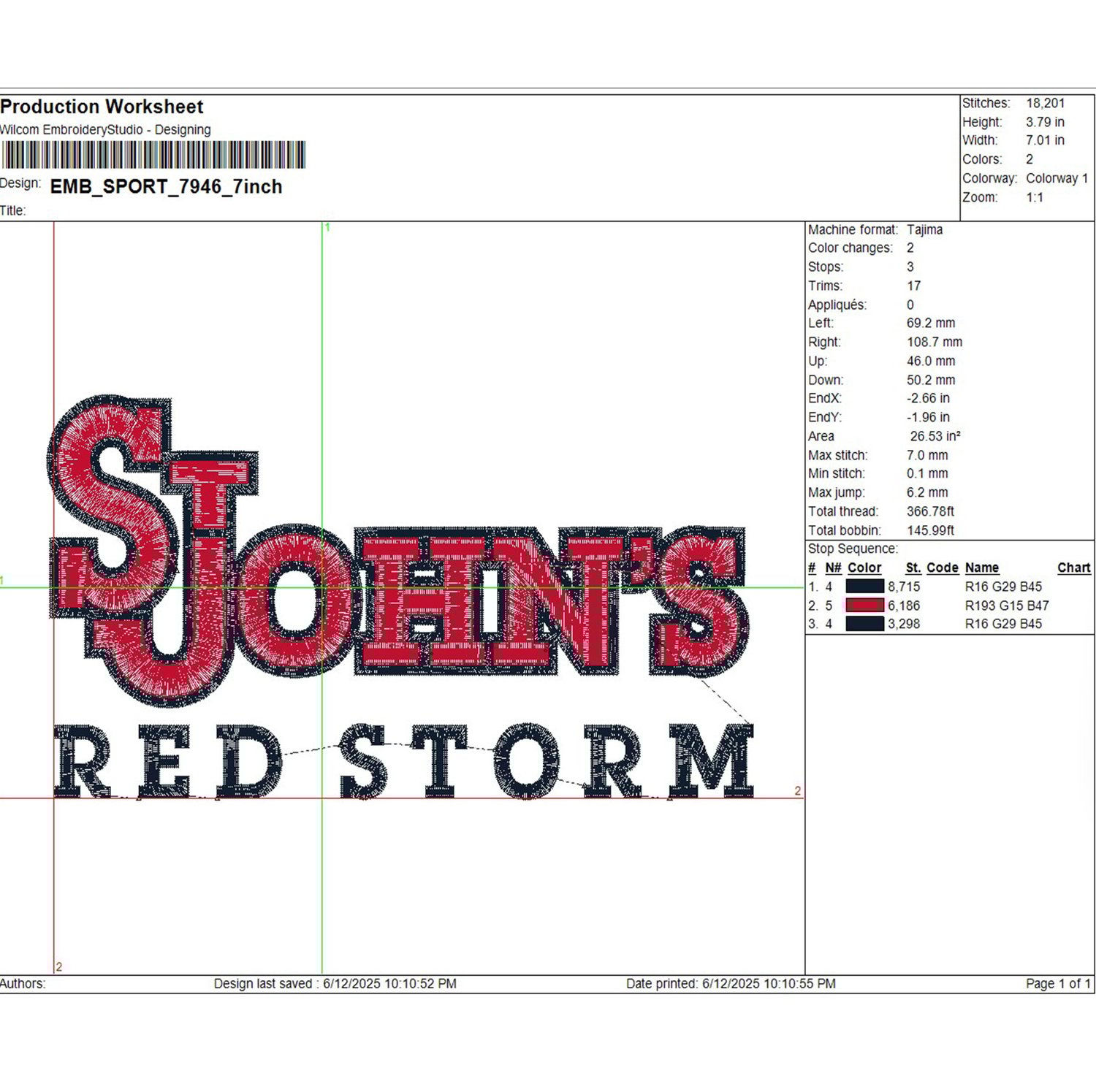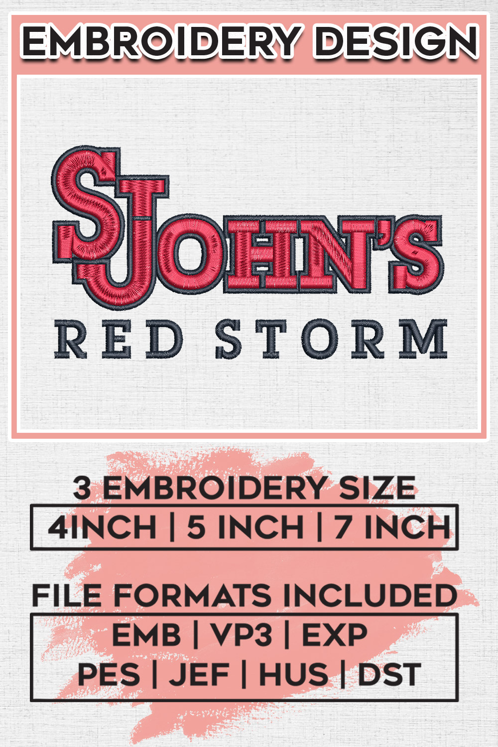 NCAA St. Johns Red Storm College Football Team Writing Logo Embroidery Designs, NCAA St. Johns Red Storm Machine Embroidery Files, NCAA Logo embroidery designs, NCAA St. Johns Logo, Digital Download