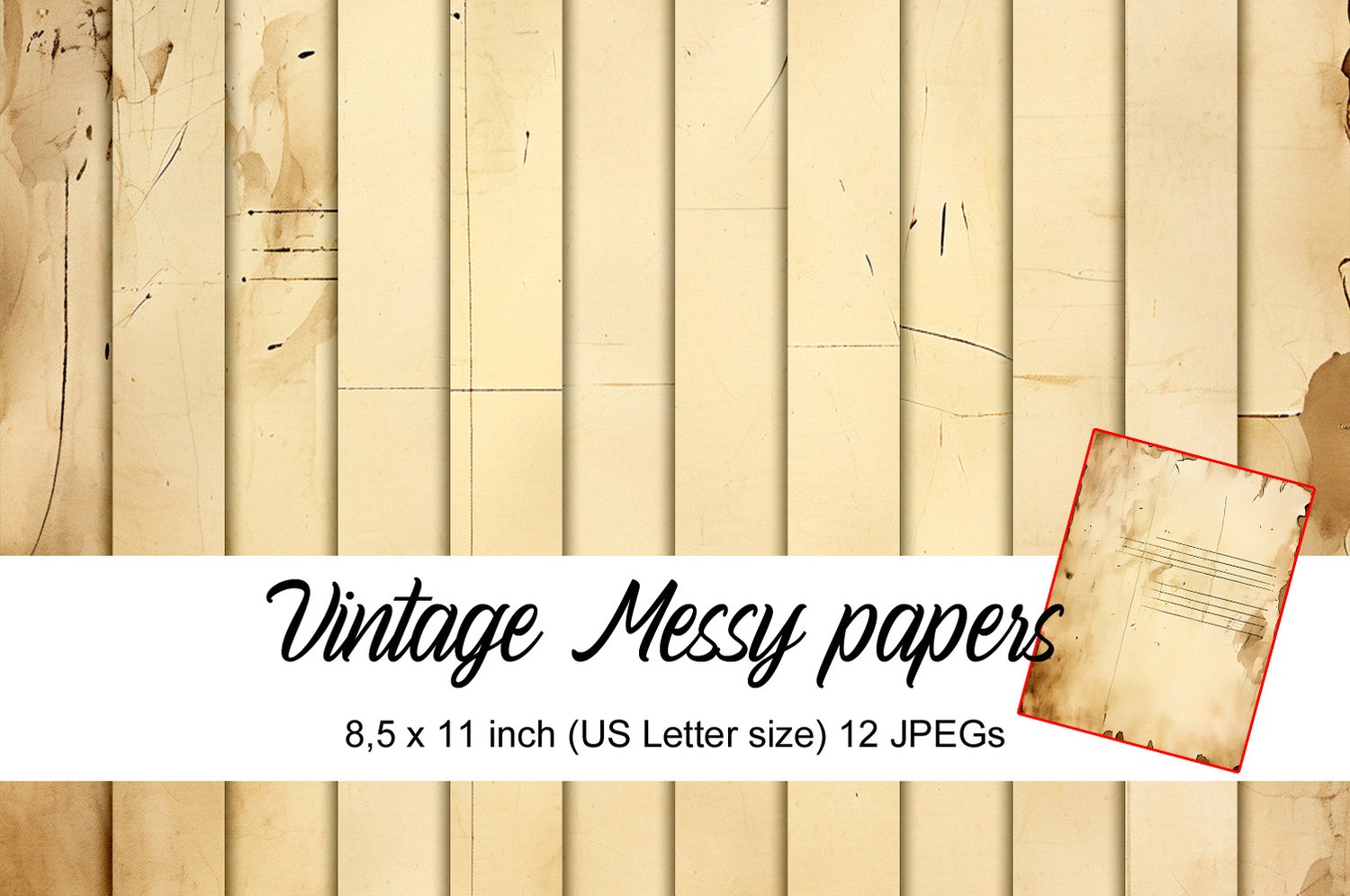 Meet Vintage Messy papers β a playful set of papers that brings a nice artsy twist to your junk journals, scrapbooks, and more! With 12 high-quality JPGs in U.S. Letter size, these backgrounds are ready to print, layer, cut, and turn into anything your creative heart dreams up.