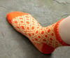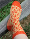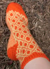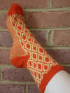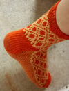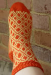 A stranded sock featuring two slightly different diamond patterns combined for an interesting geometric effect. A checkerboard pattern creates a cushioned sole and a slipped-stitch heel looks tidy and is simple to work.