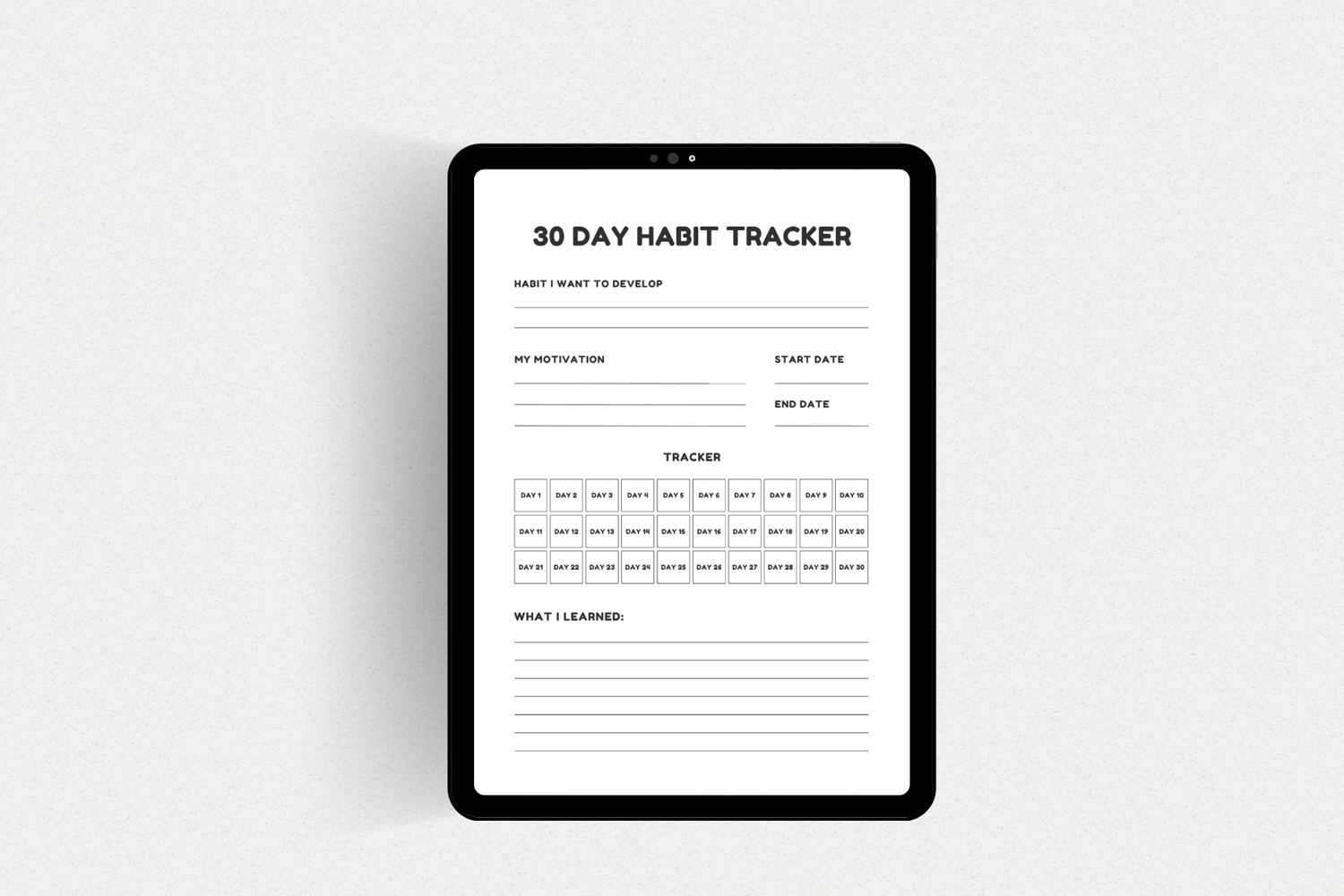 Our stylish and functional 30-Day Habit Tracker Printable is your key to unlocking lasting change. Whether you want to start new habits or break old ones, this printable is the perfect tool for cultivating positive changes in any area of your life (e.g. health, finances, or fitness).