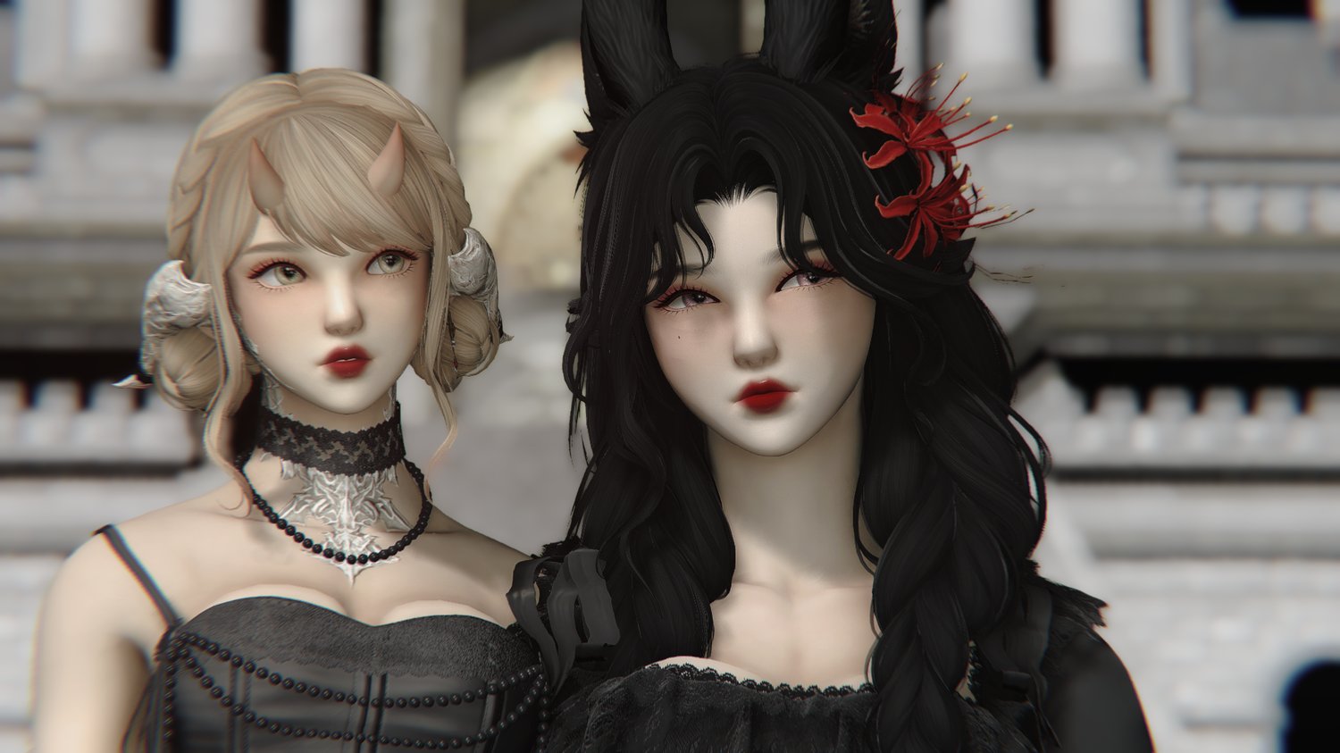 ❀Red toned makeup with subtle blush and glitter. Originally for Female Au Ra now available for all tall races (except Hroth)