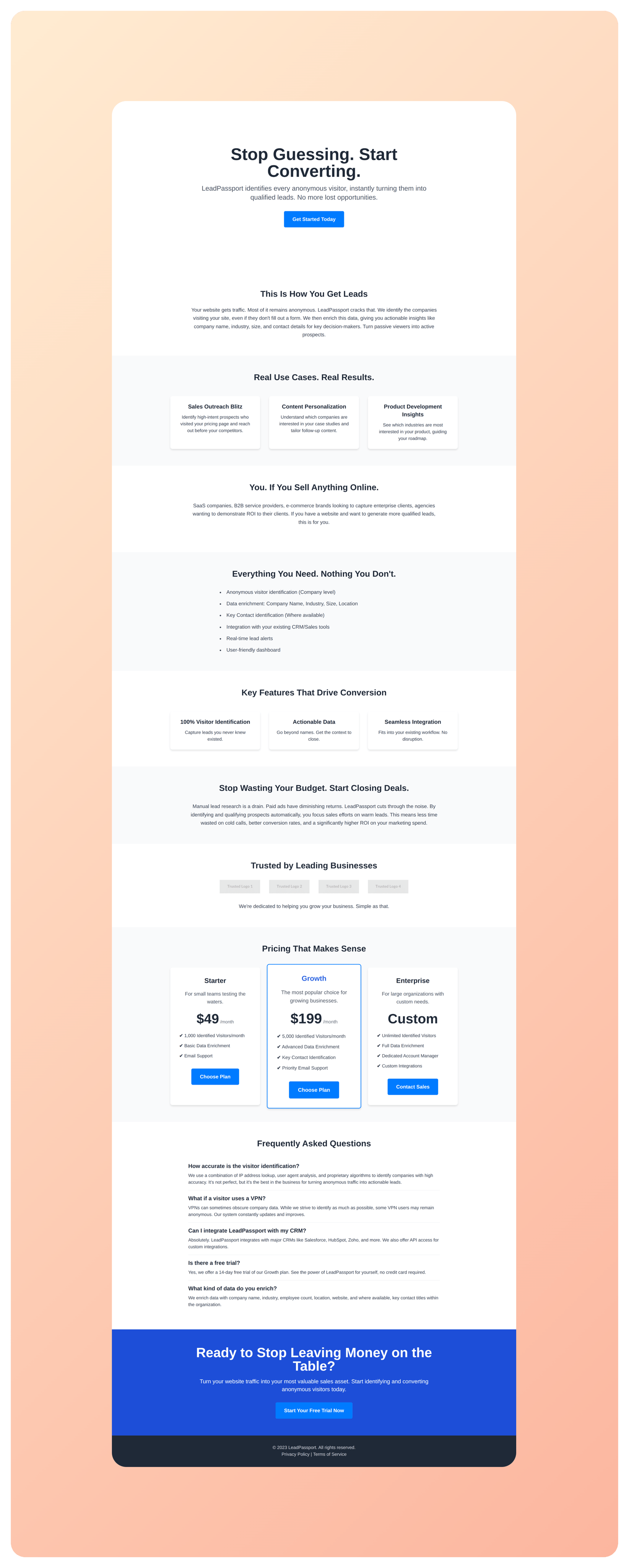 LeadPassport — B2B Lead Identification SaaS Template (Enterprise Conversion Tone)