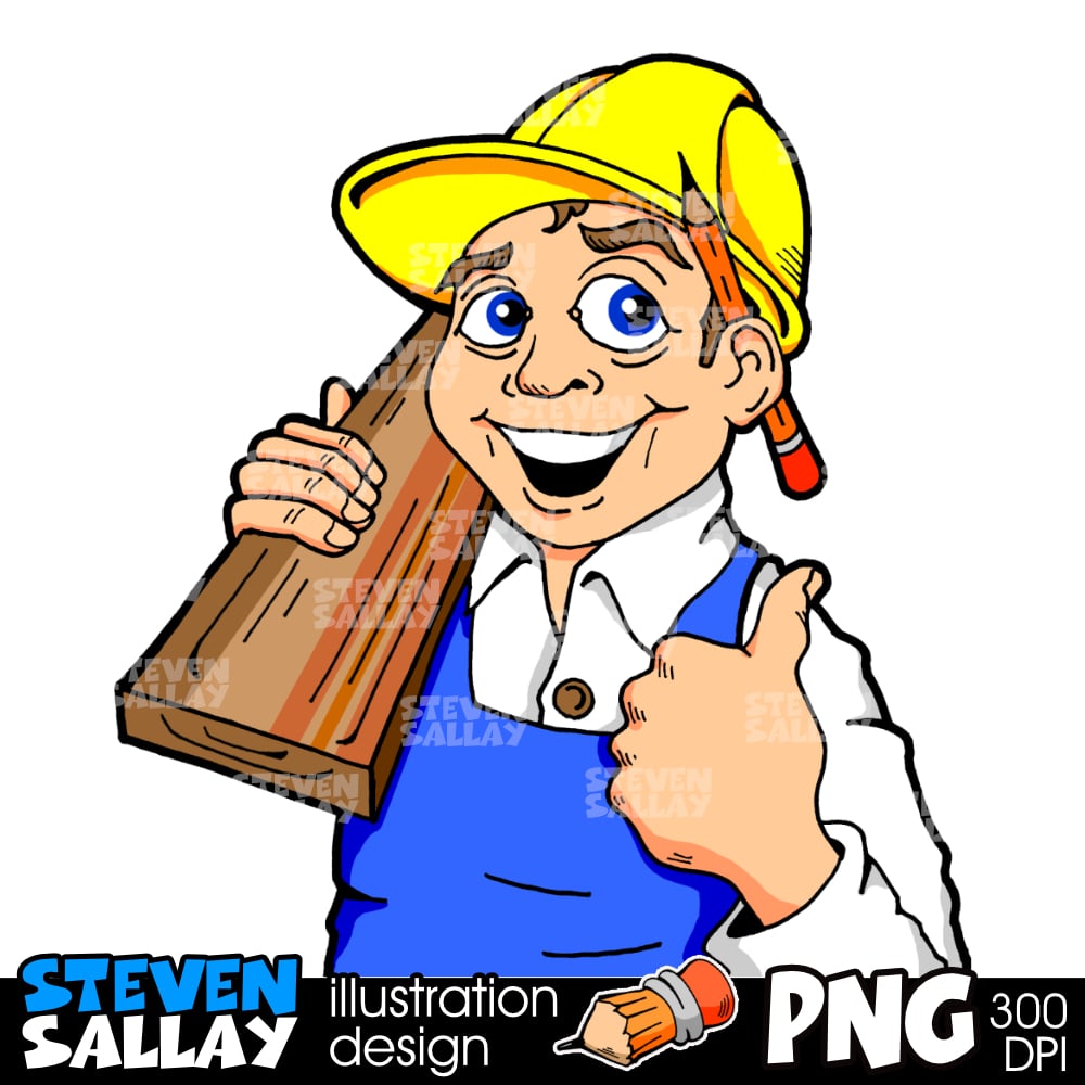 Cartoon Carpenter Clipart: Funny Woodworker Illustration | Construction Trade | Digital Download PNG