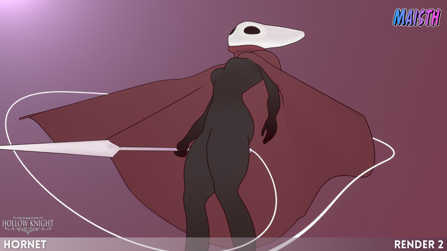 Este es un modelo 3D de Hornet, de Hollow Knight, creado desde cero, este modelo está basado en el juego, pero tomando algunas libertades grandes como tener un cuerpo más "realista", pero aún tratando de tener el mismo sentir del juego, con la cabeza y capa.