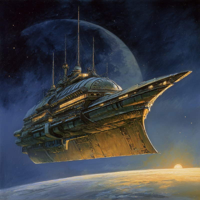 Bring your sci-fi visions to life with this painterly AI illustration prompt! Generate a high-tech alien spaceship inspired by a Roman war galley, featuring a ramming prow, futuristic Roman aesthetics, and no sails. Perfect for concept artists, sci-fi creators, and collectors, this prompt produces dramatic, cinematic images in space with planets and suns in the background. Styled with oil-paint brushstrokes reminiscent of Boris Vallejo, it delivers rich, epic, and painterly visuals ready for prints, digital art, or storytelling. Keywords: AI illustration, sci-fi spaceship, Roman galley, cinematic art, Boris Vallejo style, painterly, epic concept art.