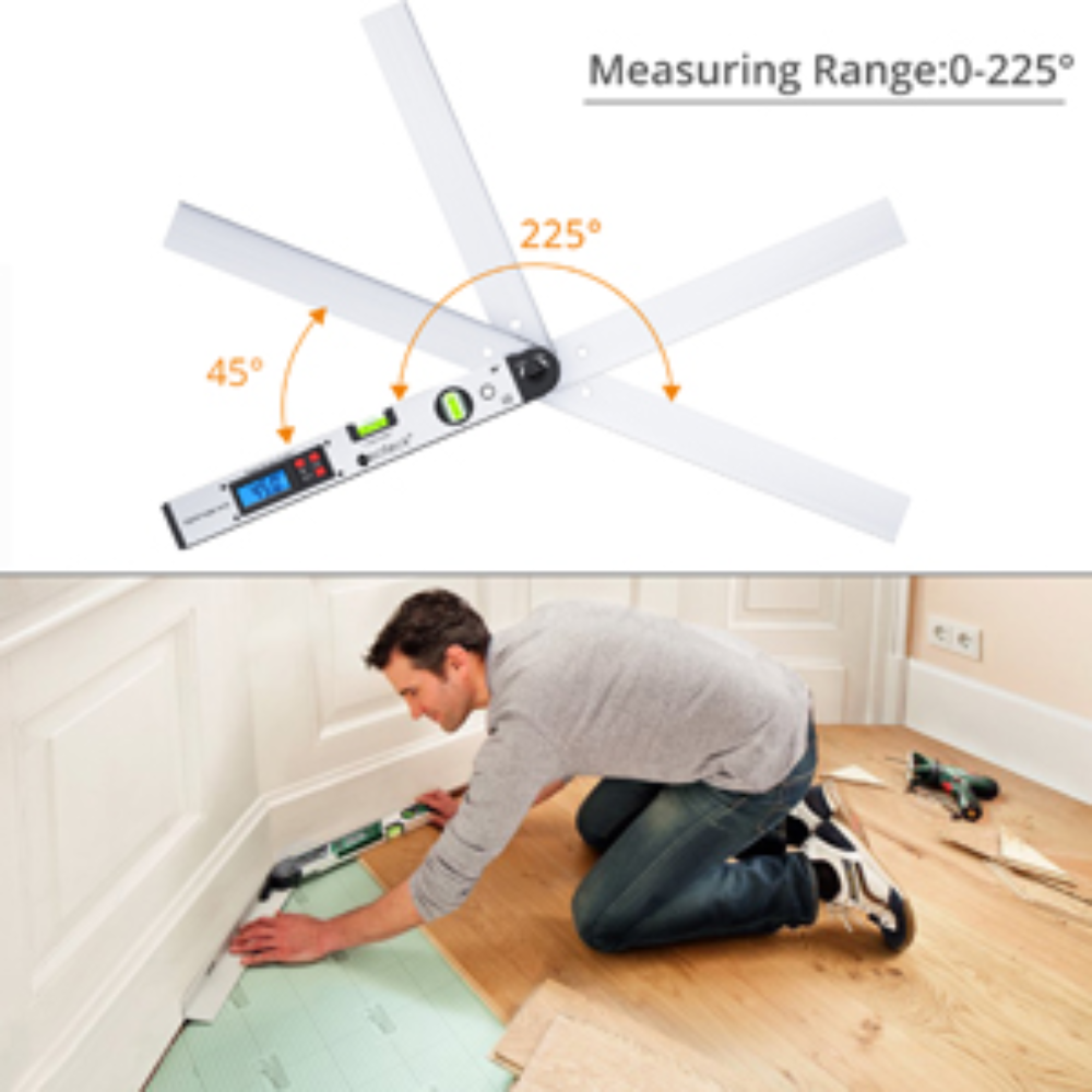 This Digital Angle Finder comes with an LCD display and blue back-light, it is able to see the measured record under any circumstances. Digital Angle Finder has a wide measurement range(0-230°) and high precision(±0.5°) angle gauge makes you work with efficiency and comfort. What’s more, it is simple to transfer the miter angle for your miter/slide saw by pressing the MITER key. The shell of the protractor is made of aluminum, which is strong and durable, suitable for the complicated working environment.