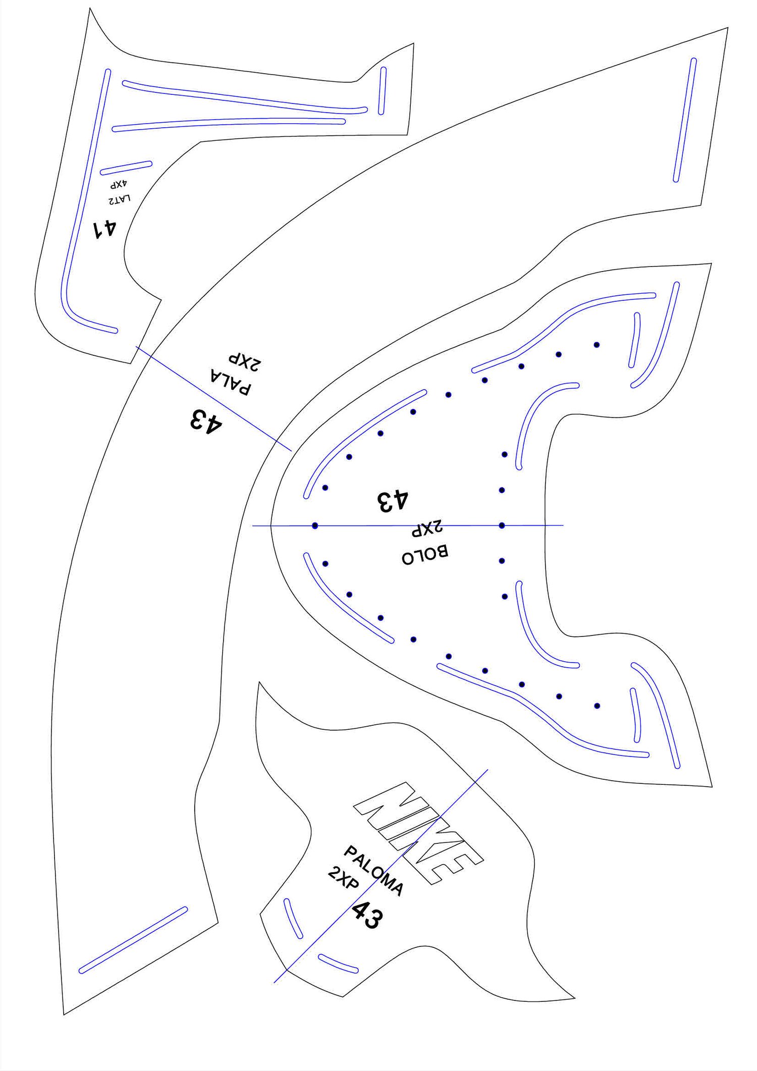 patrón de zapatilla urbana en hoja A4 PDF talla escaladas del 39 al 44. listo para imprimir.