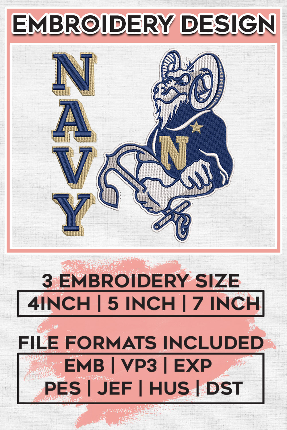 NCAA Navy College Football Team Mascot Logo Embroidery Designs, NCAA Navy Midshipmen Machine Embroidery Files, NCAA Logo embroidery designs, NCAA Midshipmen Logo, Digital Download
