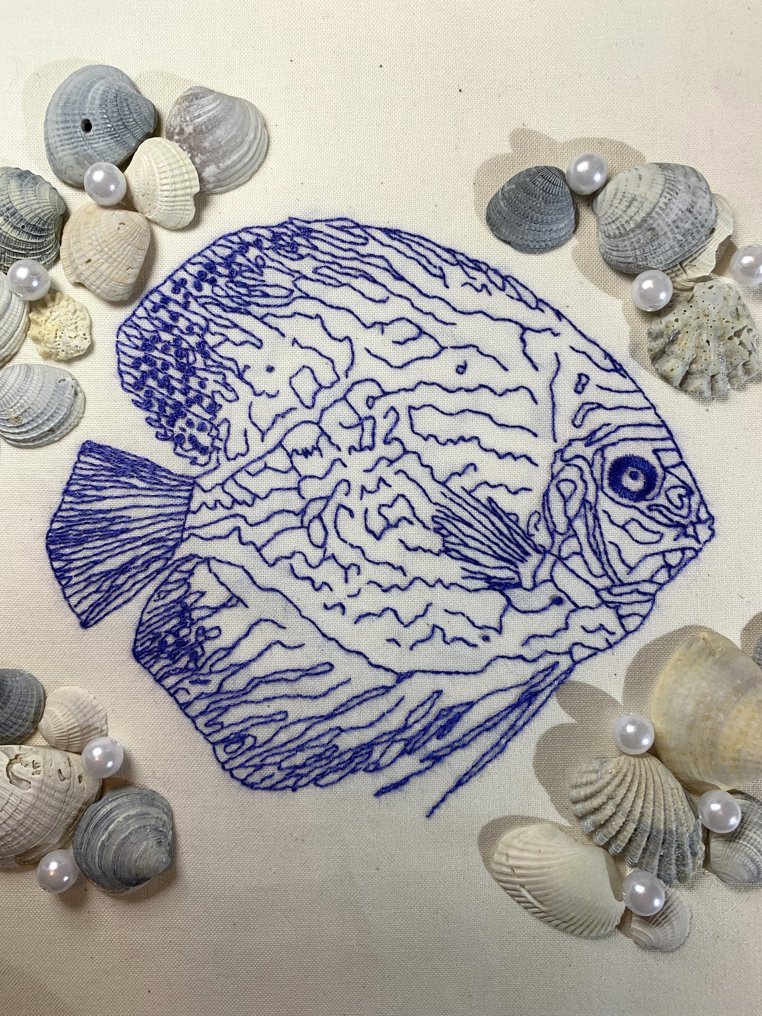 Stitch this detailed angel fish. I chose blue thread to stitch with but this pattern would look great in any color you choose.
