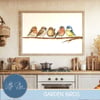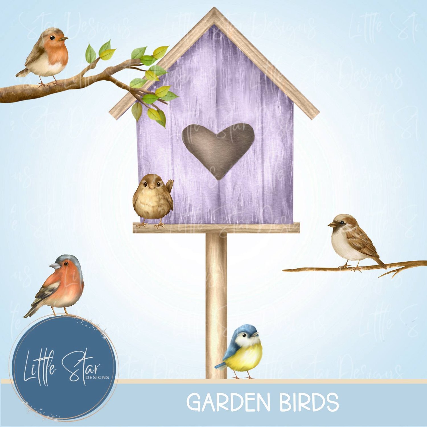 This is a high-quality hand drawn (300dpi PNG) clipart set digital download of my original artwork, titled “Garden Birds”