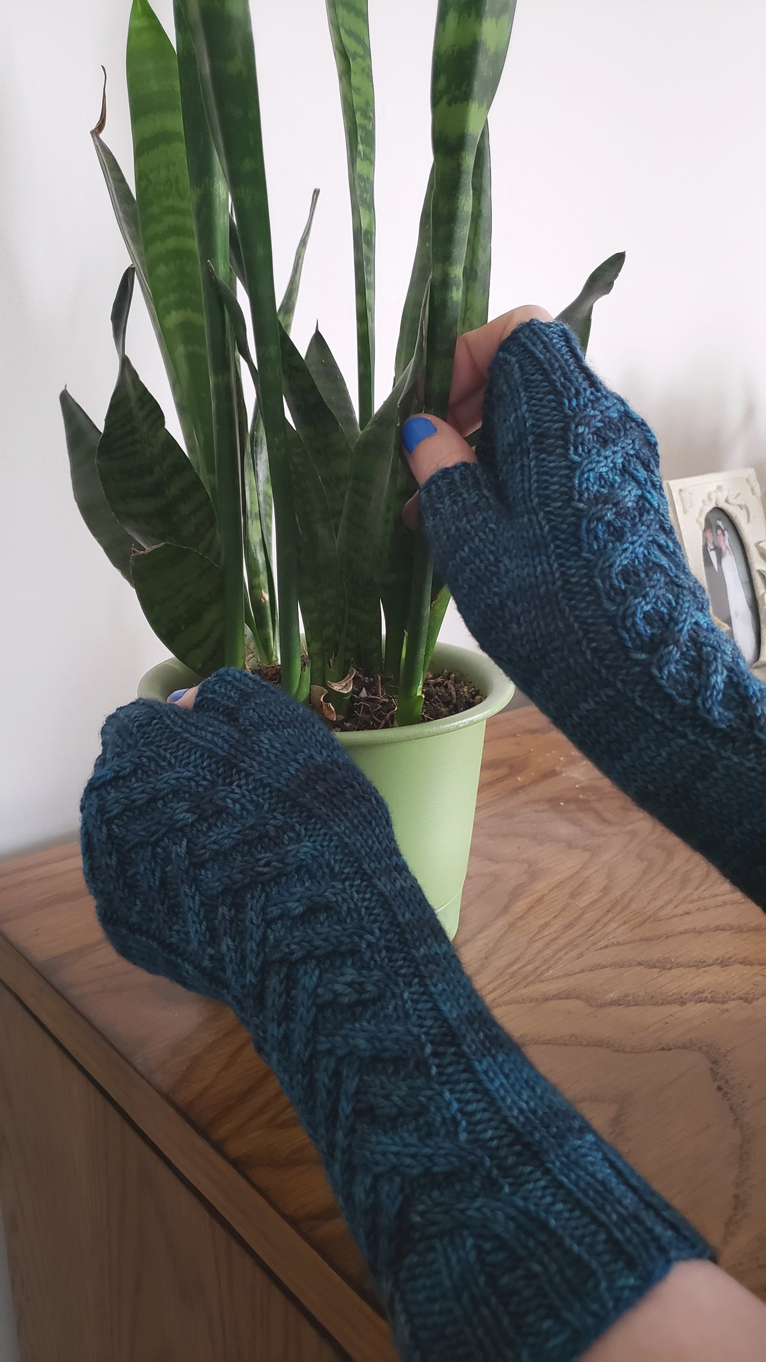 Part of the Malabrigo Quickies program, Anthozoa mitts feature an intertwined, flowing cable pattern that grows gracefully out of and back into the ribbing. They are knit in the round, from cuff to hand, with a stockinette palm. Pattern is written using magic loop, but could be worked using any small circumference method. Knit in Malabrigo Sock in colorway Under the Sea, they are buttery soft and dazzlingly beautiful!