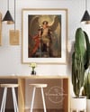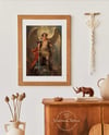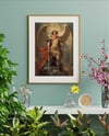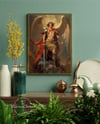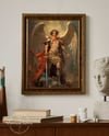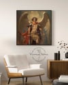 Decor your interior with this captivating artwork of Saint Michael, the protector. This stunning painting showcases the archangel's triumph over evil, wielding a celestial sword. Feel the power of divine protection as you pray before this artwork, finding solace and reassurance in Saint Michael's watchful presence. Discover unwavering safeguarding and serenity within reach.