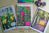 - 16 A5 pages booklet containing colourful journaling sheets for your seasonal theme and vision board, lists, readings, the 5-card reading template for the Midsummer spread (see below), Bright Ideas page, Little Pleasures list and blank sheets for your photos, mementoes, collages, doodles, musings etc.