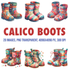 Transform your creative projects with our "Beautiful Calico Boots Clipart" collection! This digital pack includes 20 unique and whimsical images, each in PNG Transparent format at a high resolution of 300 dpi and 4096 x 4096 px.