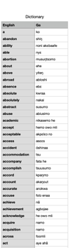 This dictionary is a self-published, experimental project based on the NGSL (New General Service List) corpus, created as an informational resource rather than an authoritative source of translations. Users should verify entries with qualified translators or native speakers, as machine translation is limited by context sensitivity, synonym substitutions, polysemy, and the difficulty of accurately rendering colloquial, idiomatic, or lesser-documented languages. Some translations may be approximations, phonetic renderings, or affected by misspellings, non-standard orthographies, or colonial linguistic influence. All entries were produced using dedicated translation software, not general-purpose AI, and occasional typographical or interpretive errors may occur. Every effort has been made to ensure accuracy and cultural sensitivity, though any perceived inaccuracies or insensitivities are unintentional. This dictionary aims to support language preservation and learning for students, researchers, and enthusiasts, and readers are encouraged to adapt or expand upon it. Though not professionally published, it represents an ongoing effort toward linguistic accessibility, with proceeds supporting future editions and related projects.