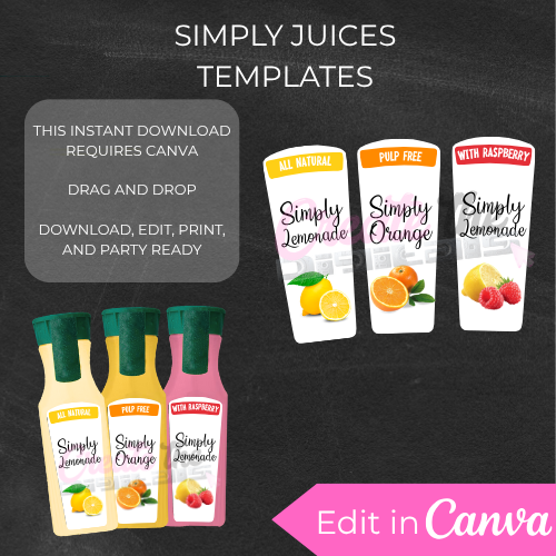 Give your event or product line that fresh, clean, and professional look with this Simple Juice Label Template — perfect for custom party favors, brunch events, or small business packaging. Designed to fit standard Simple juice bottles, this editable Canva template lets you create beautifully branded labels that match any theme or aesthetic.