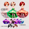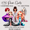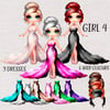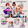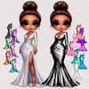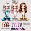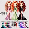 Chibi prom girls, evening dress, ball gown, 15 readymade dolls, each has customisable hair and dresses. 90 PNGs. sublimation, print: