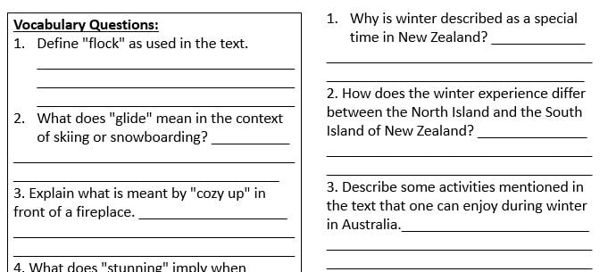 Your purchase also includes bonus vocabulary and open questions based on the same text.