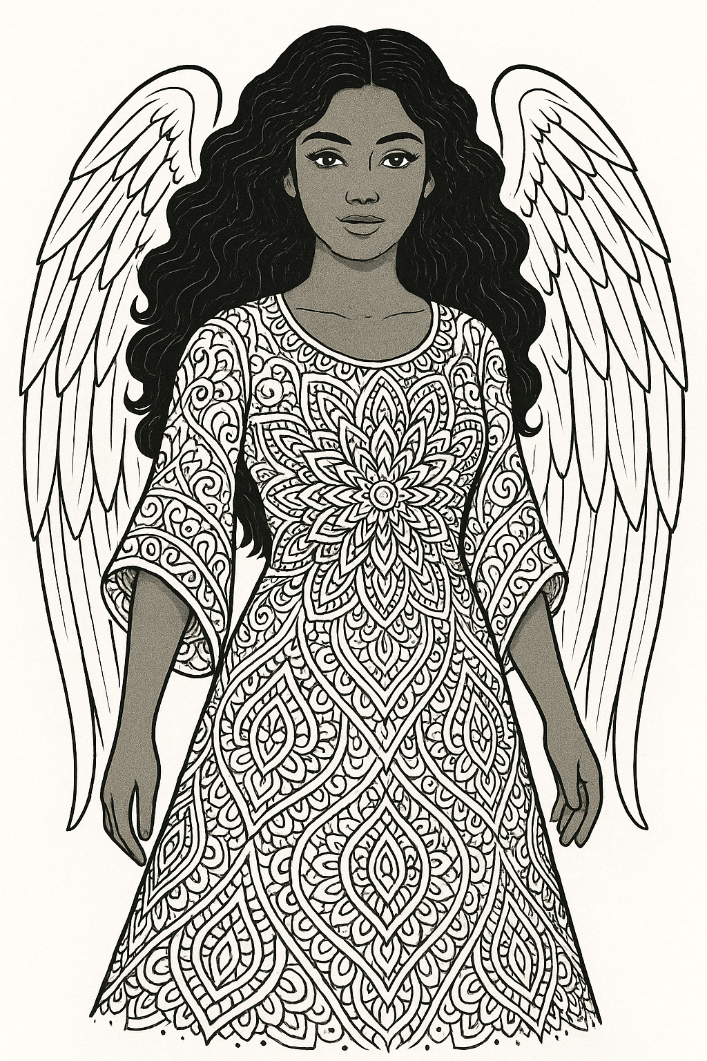 Heavenly Grace – Angel Mandala Coloring Page for Reflection & Healing