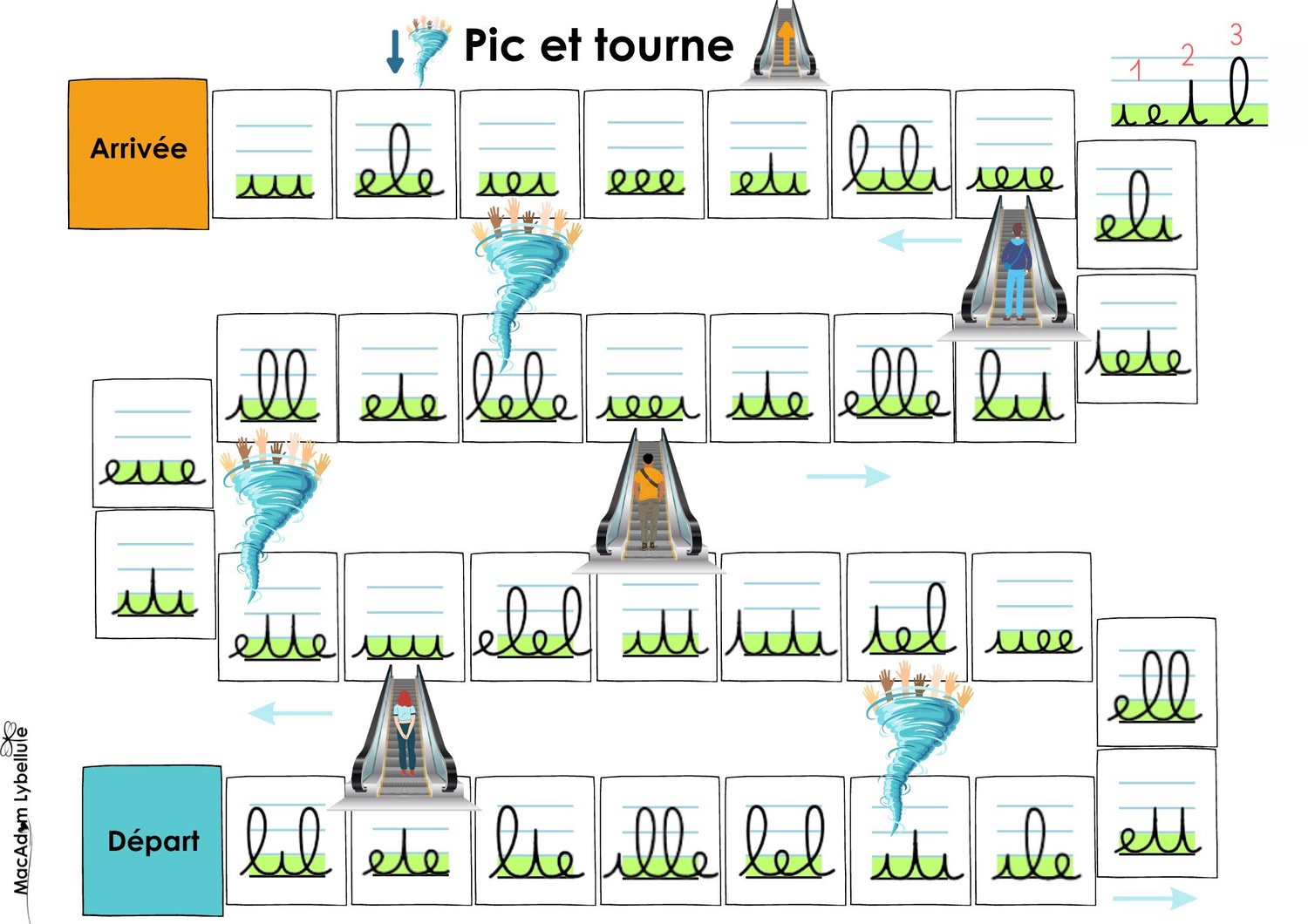 6 jeux de plateau pour le prix de 4. Pour s’entrainer au tracé des formes de base, tout en jouant.