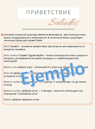 Этот практичный чек-лист содержит 8 страниц в формате PDF и включает в себя набор основных разговорных фраз и выражений, необходимых для общения на испанском языке.Данный материал будет особенно полезен для тех, кто находится на начальном уровне изучения испанского, а также для туристов, планирующих поездку в испаноязычные страны.