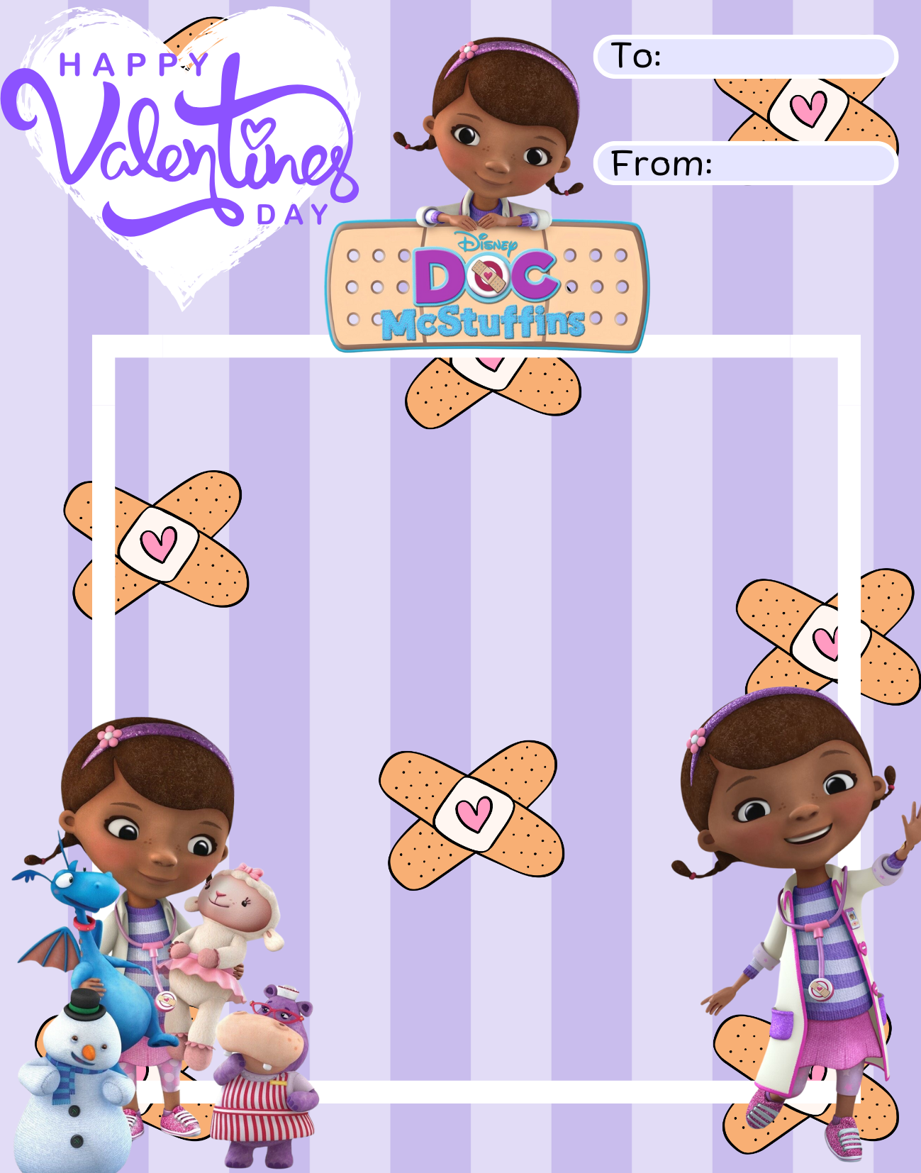 Doc McStuffins Jumbo Valentine’s Day Candy Card Template , Ready to print, editable on Canva, 11x14