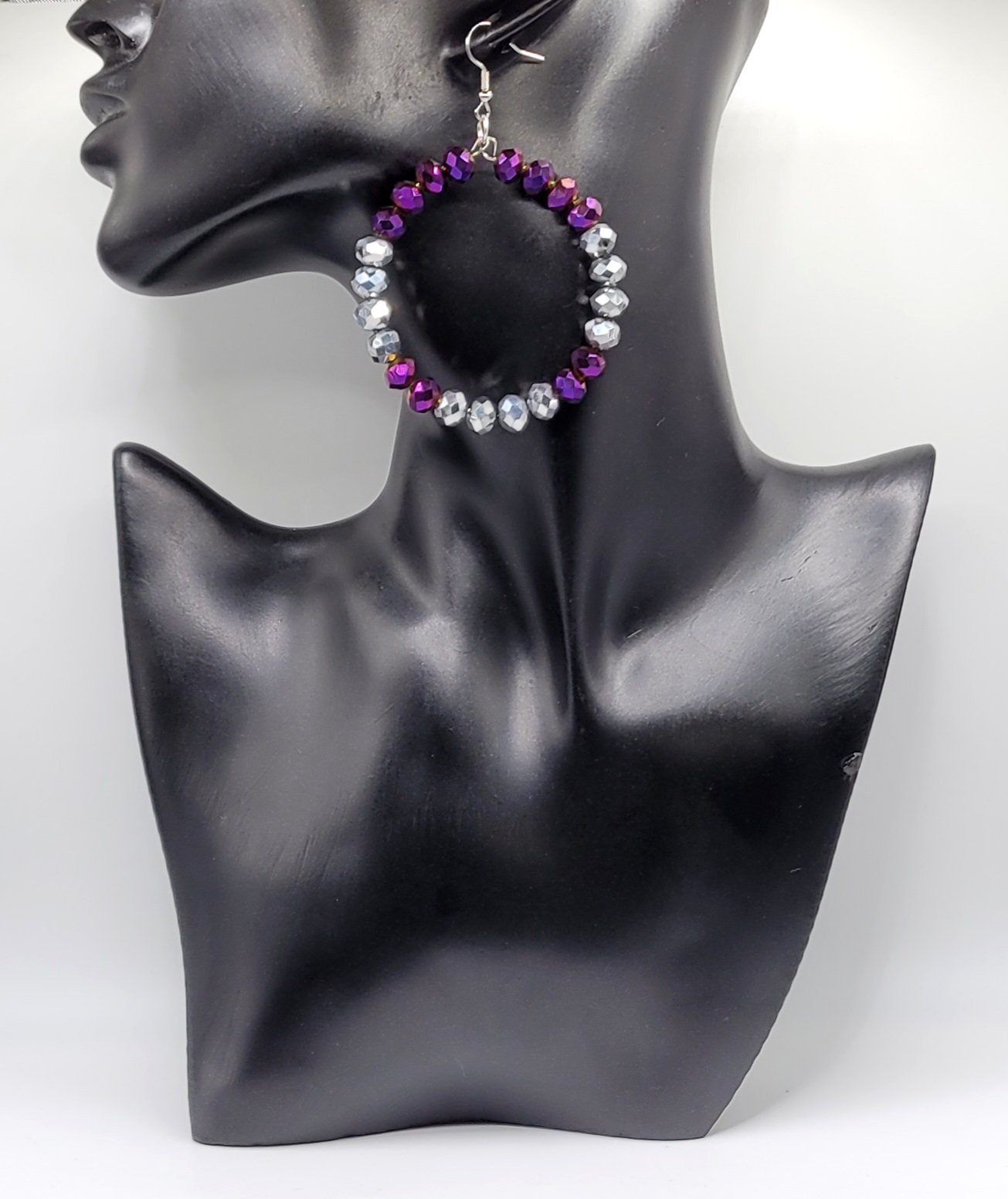 Indulge in the enchanting allure of our Sparkley Purple and Silver Tone Faceted Glass Beaded Hoop Collection earrings! Adorned with shimmering hues of purple and silver, these exquisite hoops are a mesmerizing addition to any ensemble. Handcrafted with precision and attention to detail, each glass bead reflects light with a captivating sparkle, ensuring you'll shine from every angle. Elevate your style with these statement earrings that effortlessly blend elegance and charm, perfect for any occasion. Don't just wear jewelry, make a statement with our dazzling hoops that are bound to turn heads and leave a lasting impression!