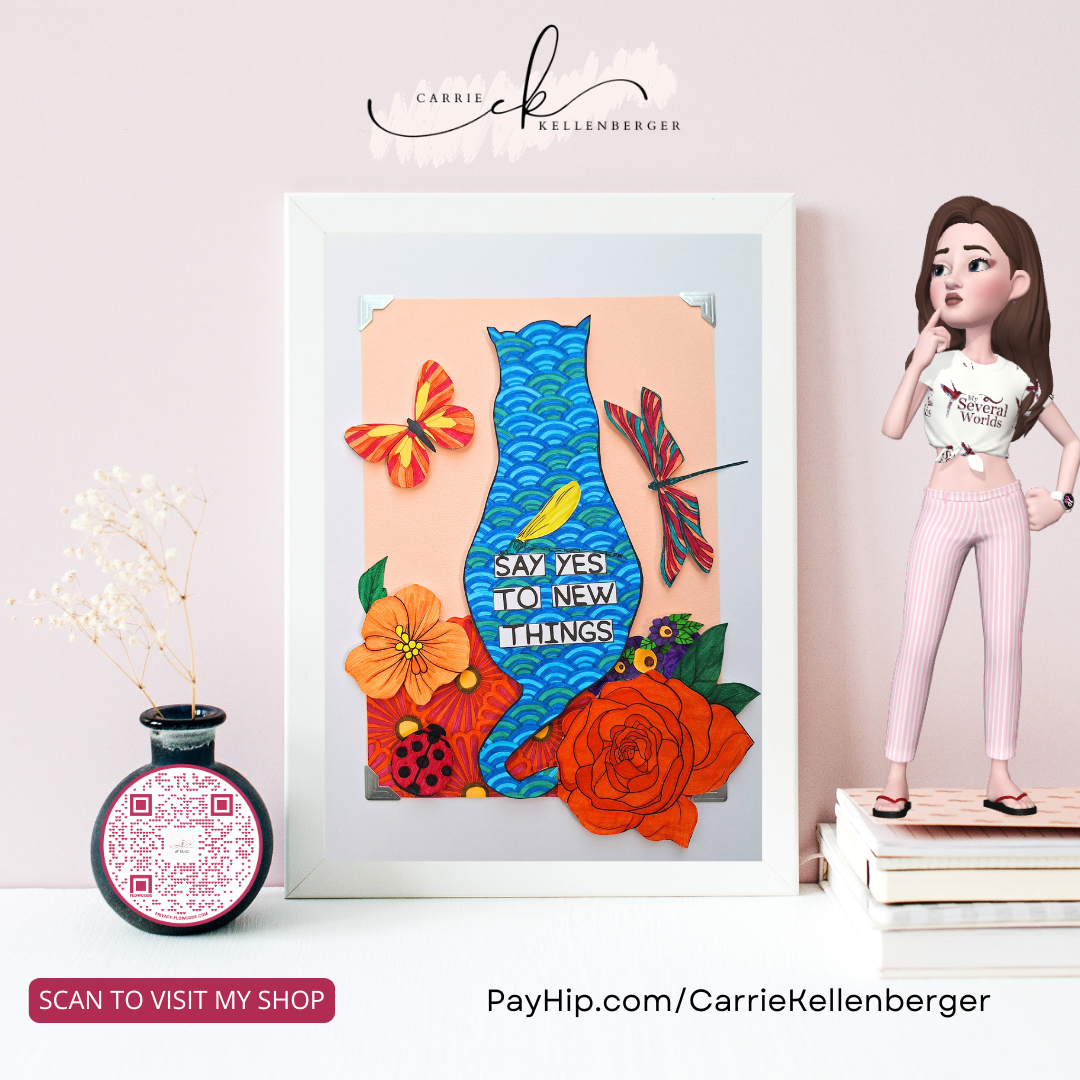 My paper cutting technique adds an extra 3D dimension of beauty and intricacy to each design, making my collages a delightful keepsake.They’re meant to brighten any space: an office cubby, a senior’s bedside, a child’s room, a sunny kitchen, or anywhere your heart desires.