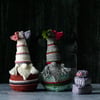 She's the first gnome to feature an underhat. What’s an underhat? It’s the hat every gnome has under their out-and-about hat. It’s also, frankly, a way for me to resolve the problem of how to design a gnome with multiple hat options that doesn’t mean I have to decide what a gnome without a hat looks like! I’ve been pondering this for years, and it seems to me that only a gnome should gnow what’s underneath.