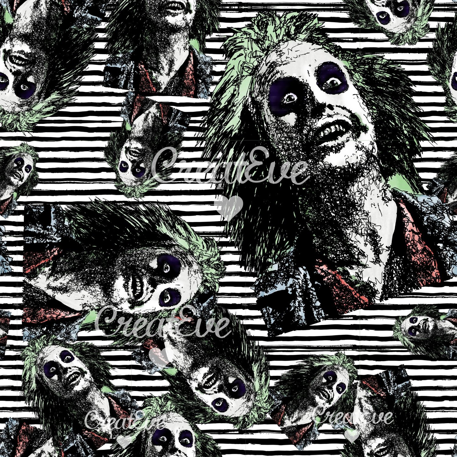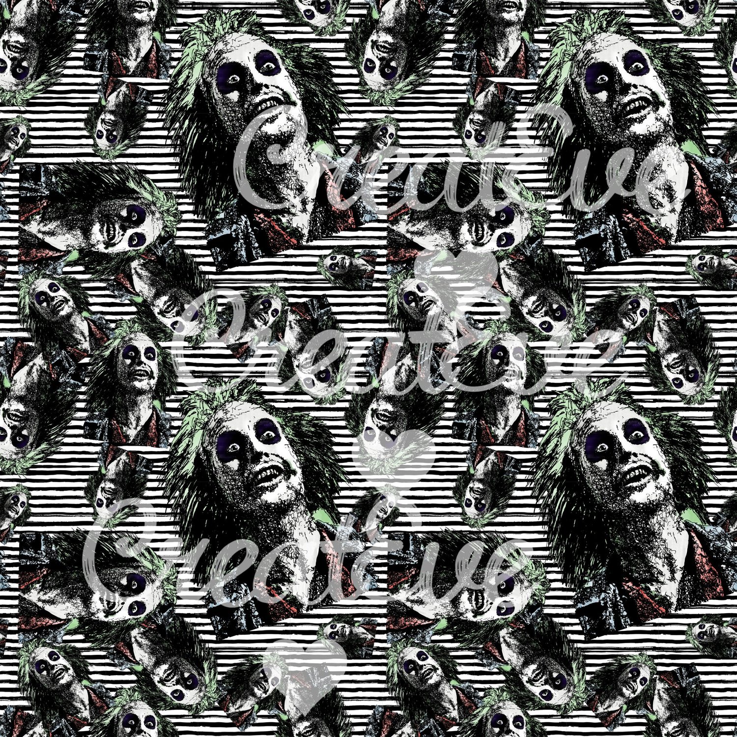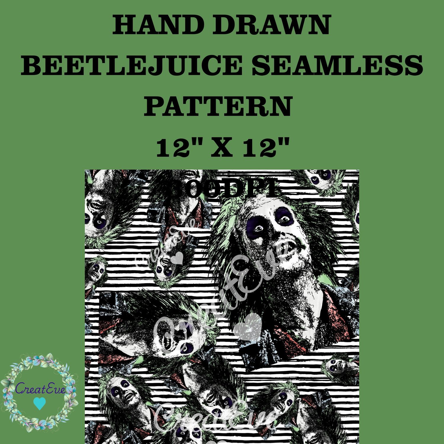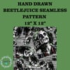 Hand Drawn Beetlejuice Seamless Pattern 12"x12" Commercial Use