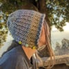 This hat can be worn as a slouchy hat or a bonnet, and its transformation is as easy as opening or closing some buttons.
