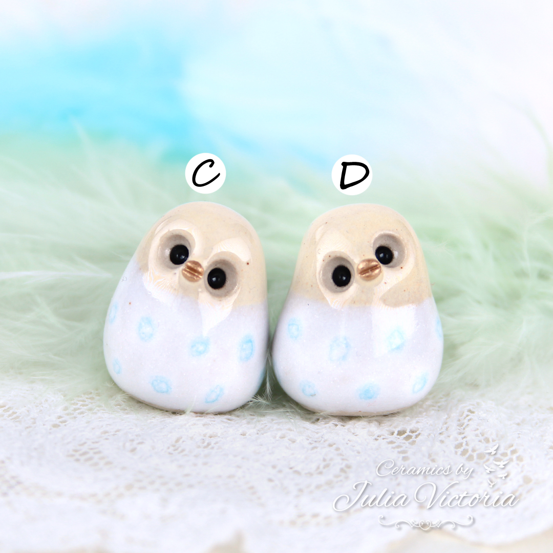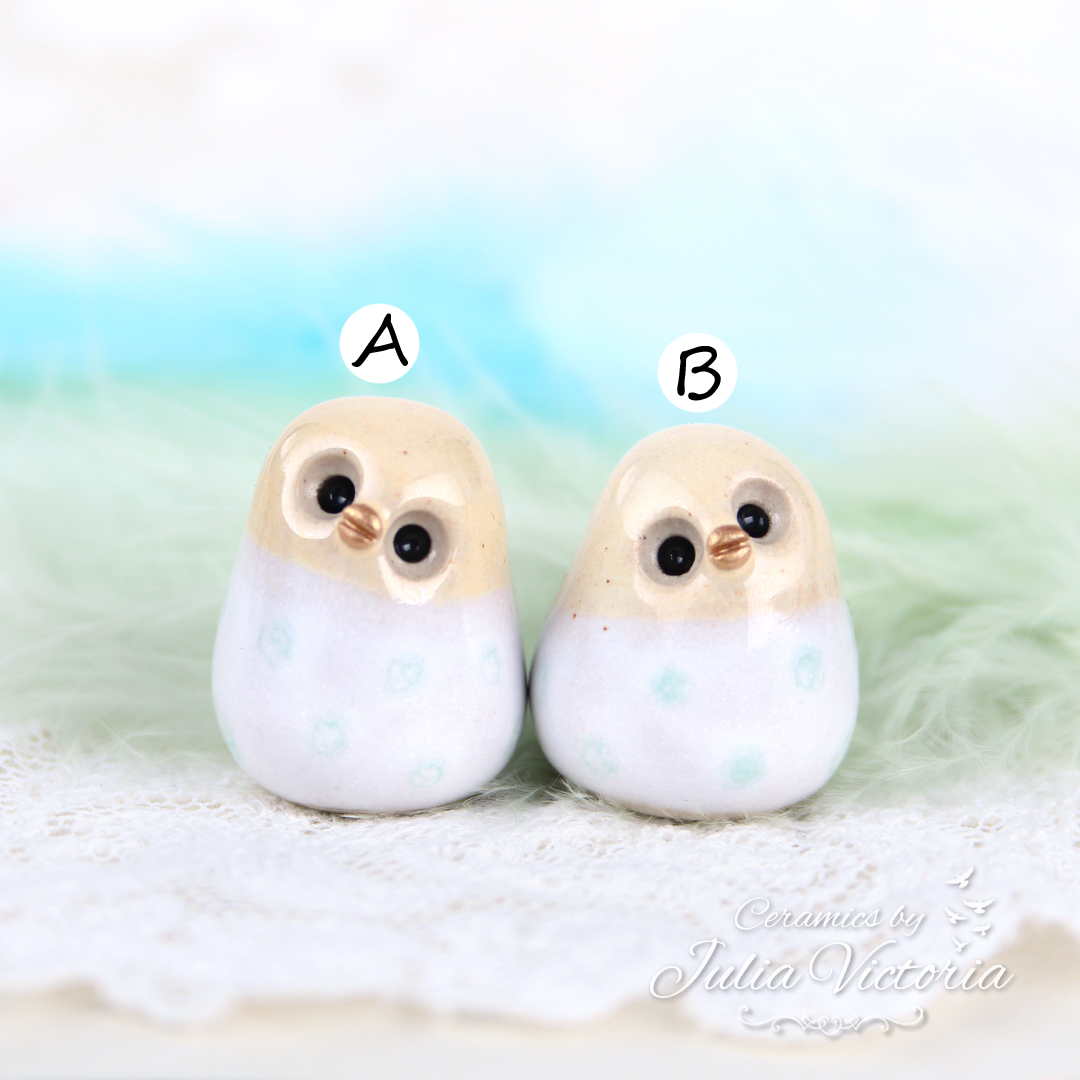 These cute little chicks are looking for a new home. They are hand-sculpted in ceramics, glazed and painted by me
