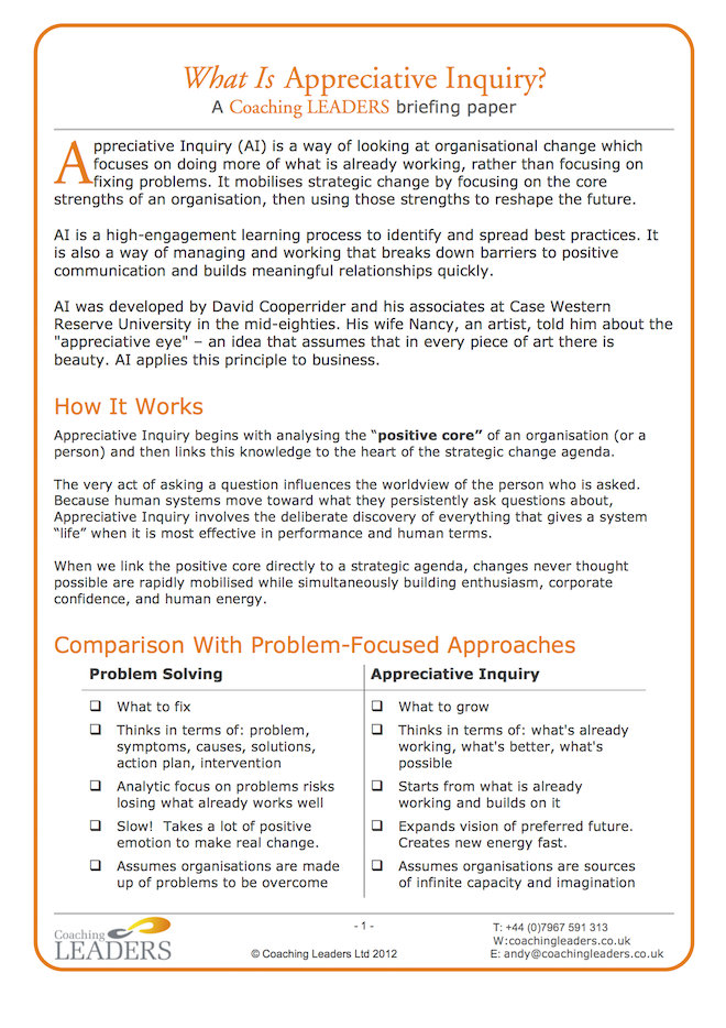 What Is Appreciative Inquiry? - Coaching Leaders Briefing Paper