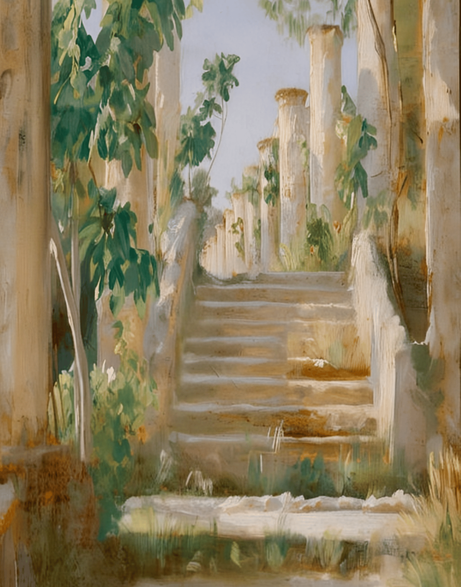 Beaty of Ancient Staircase, Vintage City, Nostalgic City life, Nature, Cool Nature, Beautiful Nature, Sunrise, Natural Landscape, Wall Art, Digital Art.