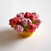 The Rose Bouquet Coaster is a no-sew crochet pattern that features a dozen rose buds embellishing the edges of a lacy coaster. There are two variations for the flowers to create both a young rosebud and one that is more mature, with protruded petals. A flower pot pattern is included as a storage container, so that the coaster serves as a bouquet of a dozen roses and makes a lovely home decor item for a windowsill or office desk. This sweet crochet pattern is the perfect gift for Valentine’s Day, Mother’s Day, birthdays, or Christmas holiday. They are also suitable for selling at craft fairs.