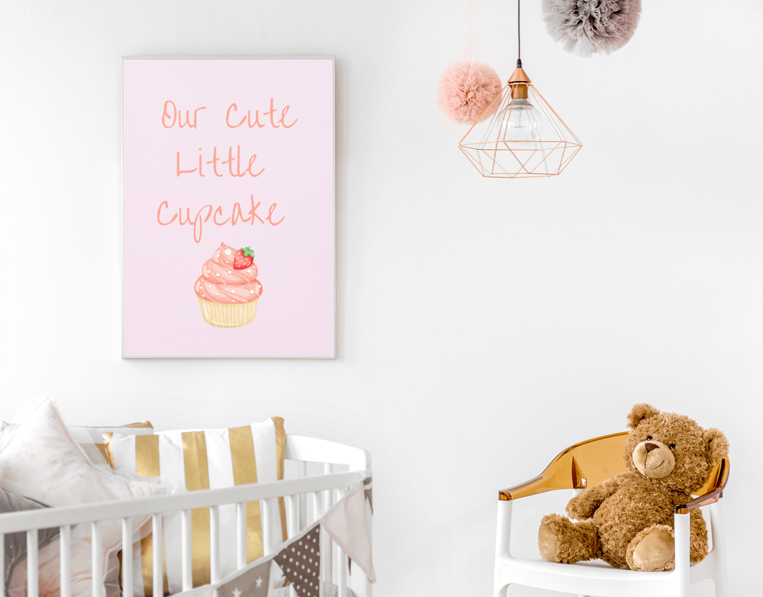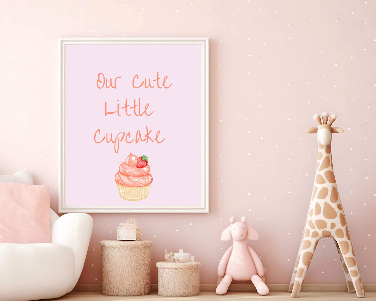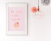 Sweet as can be — a simple pink cupcake design with darling text. Lovely for nurseries and baby showers..
