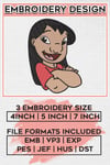 Lilo Pelekai Di.sney Character Embroidery Designs, Lilo and Stitch Machine Embroidery Files, Cartoon Character Machine embroidery designs, Disney, 3 sizes, Digital Download