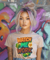 Bring the boss energy with this bold and gritty “Watch Me Work” design, perfect for entrepreneurs, creators, and go-getters. This high-energy graphic features graffiti-style lettering in orange, green, and red tones, with stacks of cash and a heart pop for extra attitude!