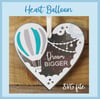 This listing is for my October VIC file, the heart shaped cloud and hot air balloon svg file, you will get included in this file the heart svg to fit the acrylic craft 150mm heart. This can be scaled up and down, you can add text of your choice to the design before cutting