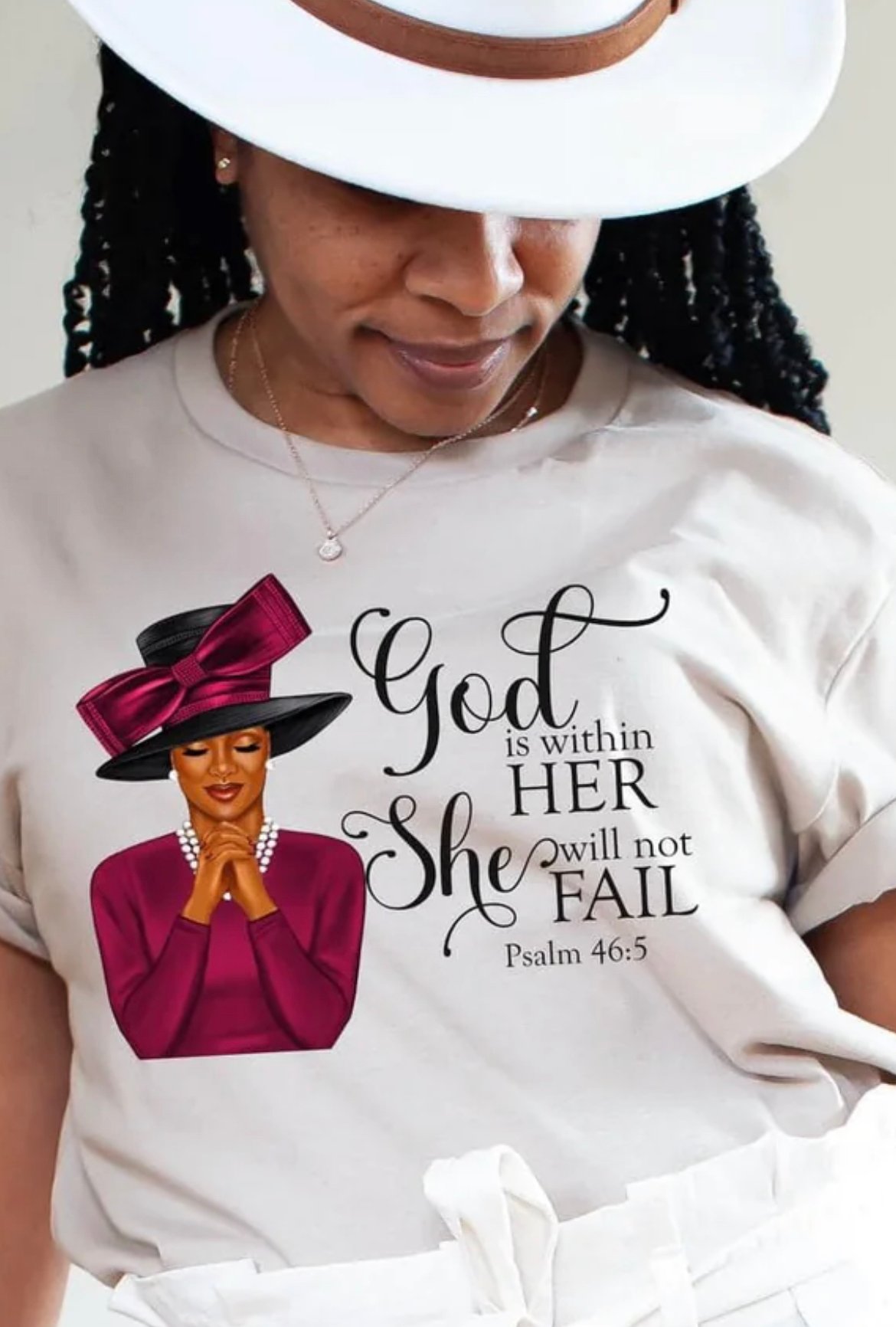 Crafted from high-quality cotton, the God is With Her tee is a perfect reminder that you cannot fail! Great for running around doing errands or dressing up for a night out. Shop now and treat yourself or someone special to this beautiful tee.