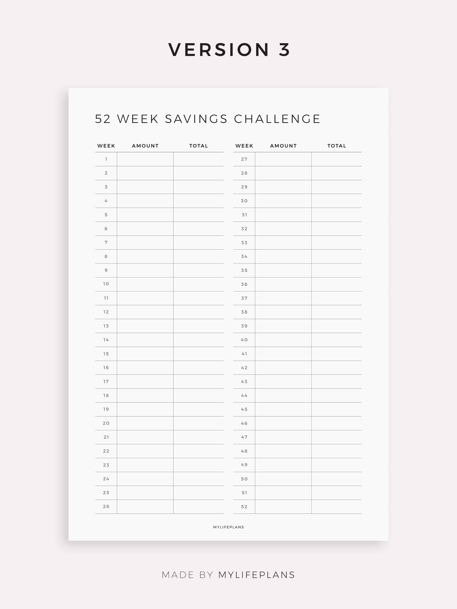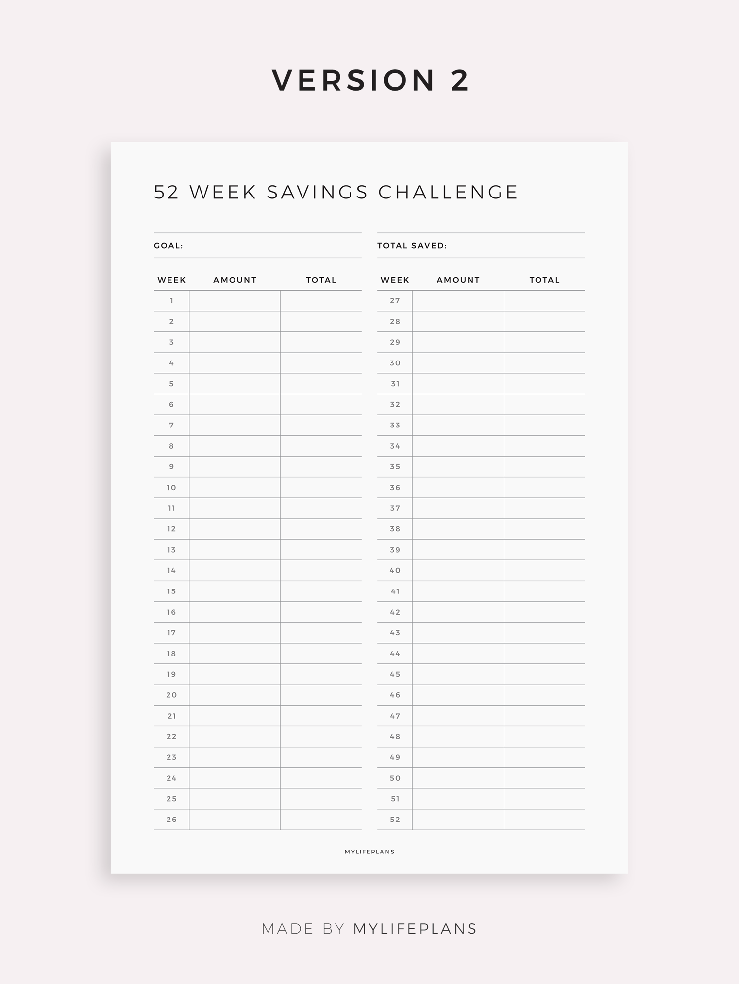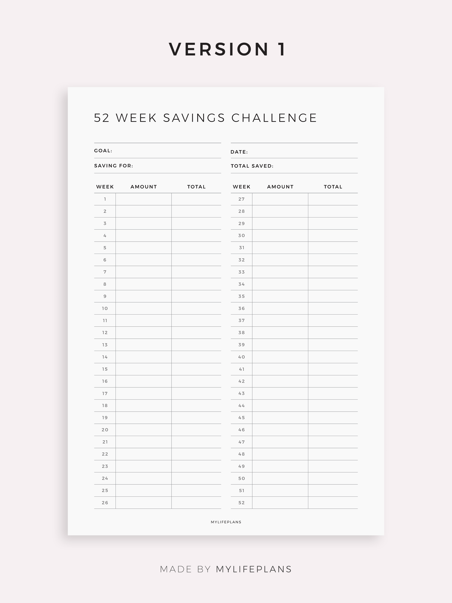 52 Week Savings Challenge Template for Remarkable, Supernote, Kindle, Boox, Kobo