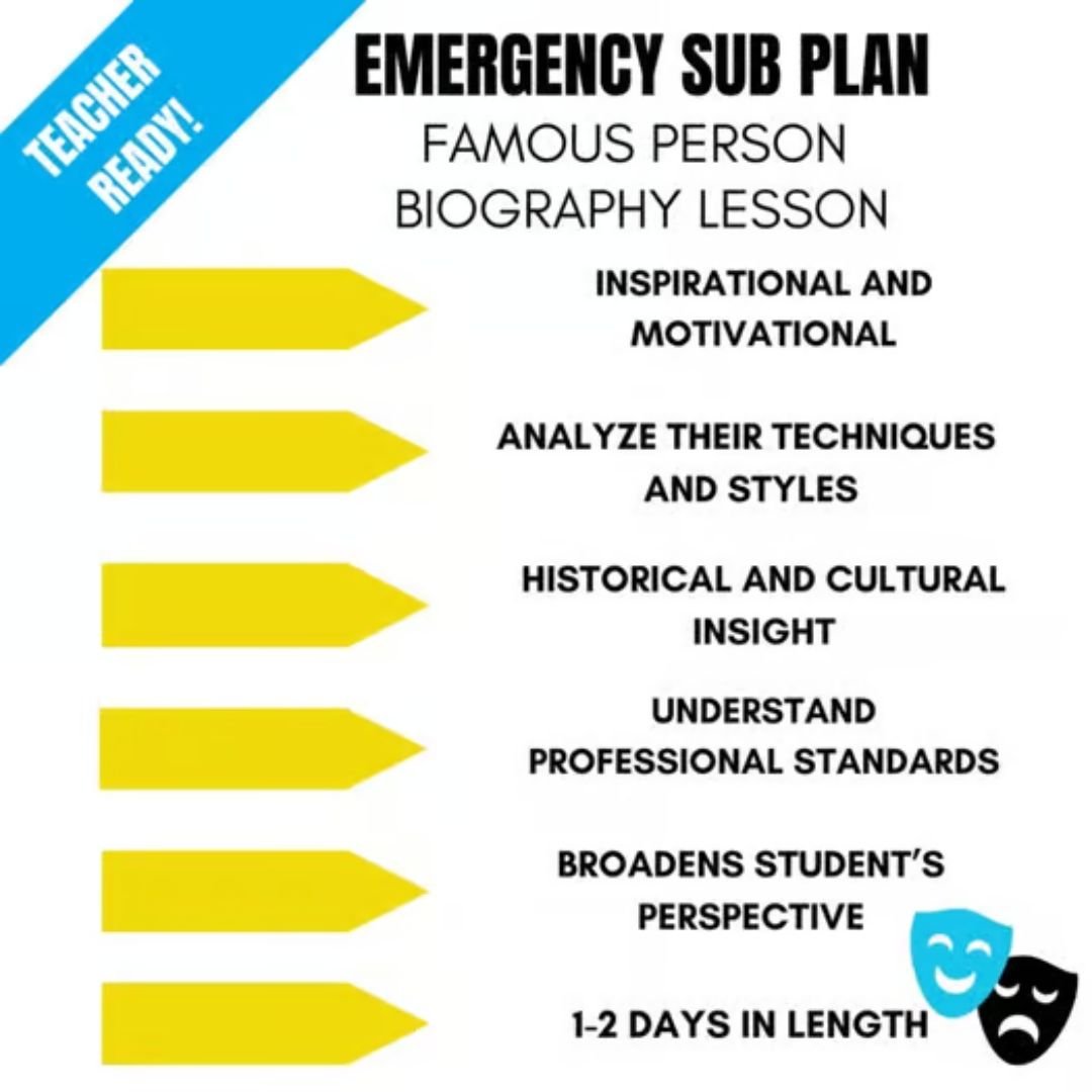 Need an emergency sub plan? Talk about making it easy on yourself, huh? This biography (formatted like a newspaper) about the performing artist, Tony award and Pulitzer prize winning Lin Manuel Miranda of Hamilton fame, Students learn about his childhood, education, journey to Broadway as well as quotes from Miranda, etc. It is suitable for middle and high school students and can be used as a stand alone lesson or with other biographies. Each lesson in this series is tailored to the strengths of that particular artist.