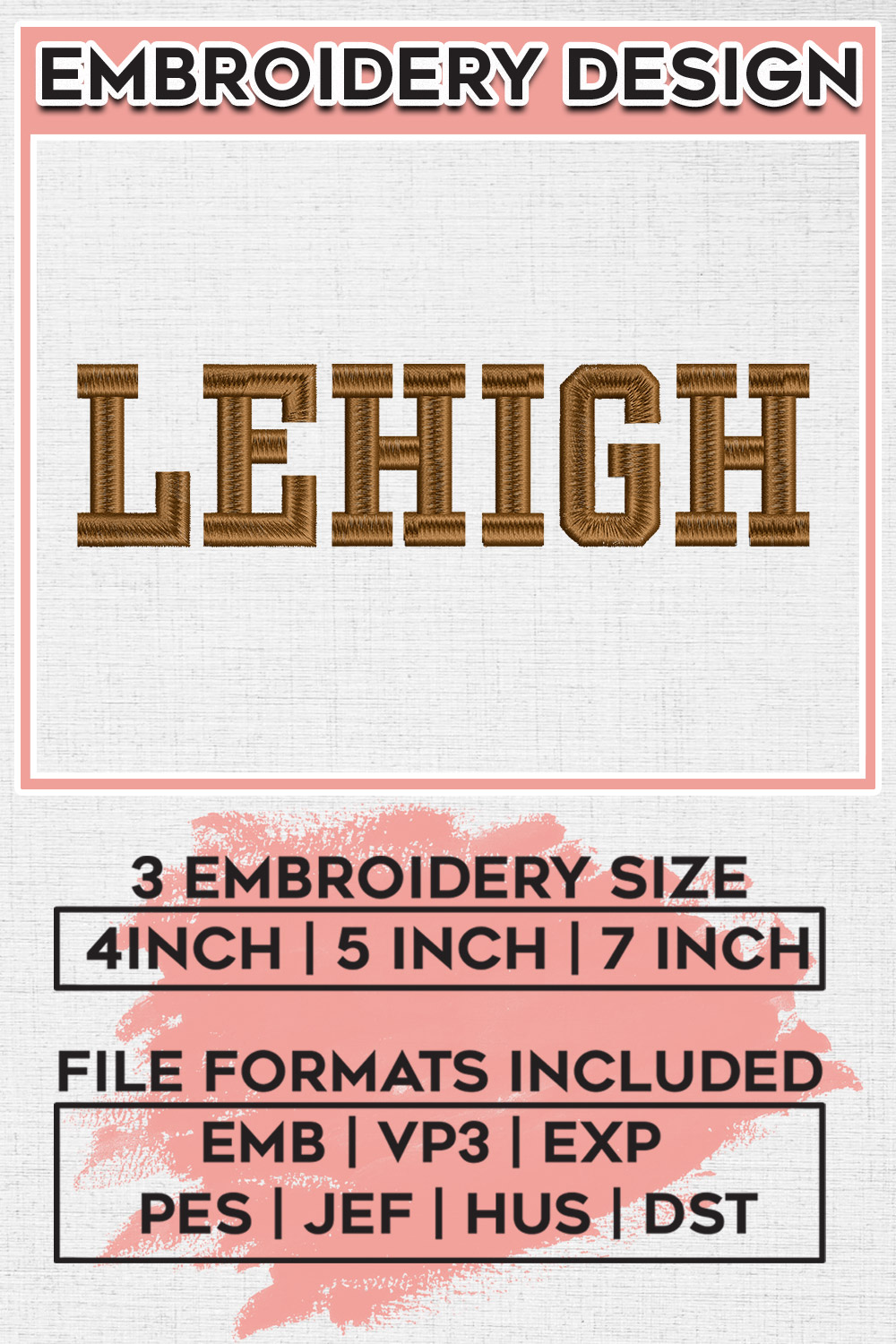 NCAA Lehigh Football Team Word Logo Embroidery Designs, NCAA Lehigh Mountain Hawks Machine Embroidery Files, NCAA Logo embroidery designs, NCAA Lehigh Mountain Logo, Digital Download