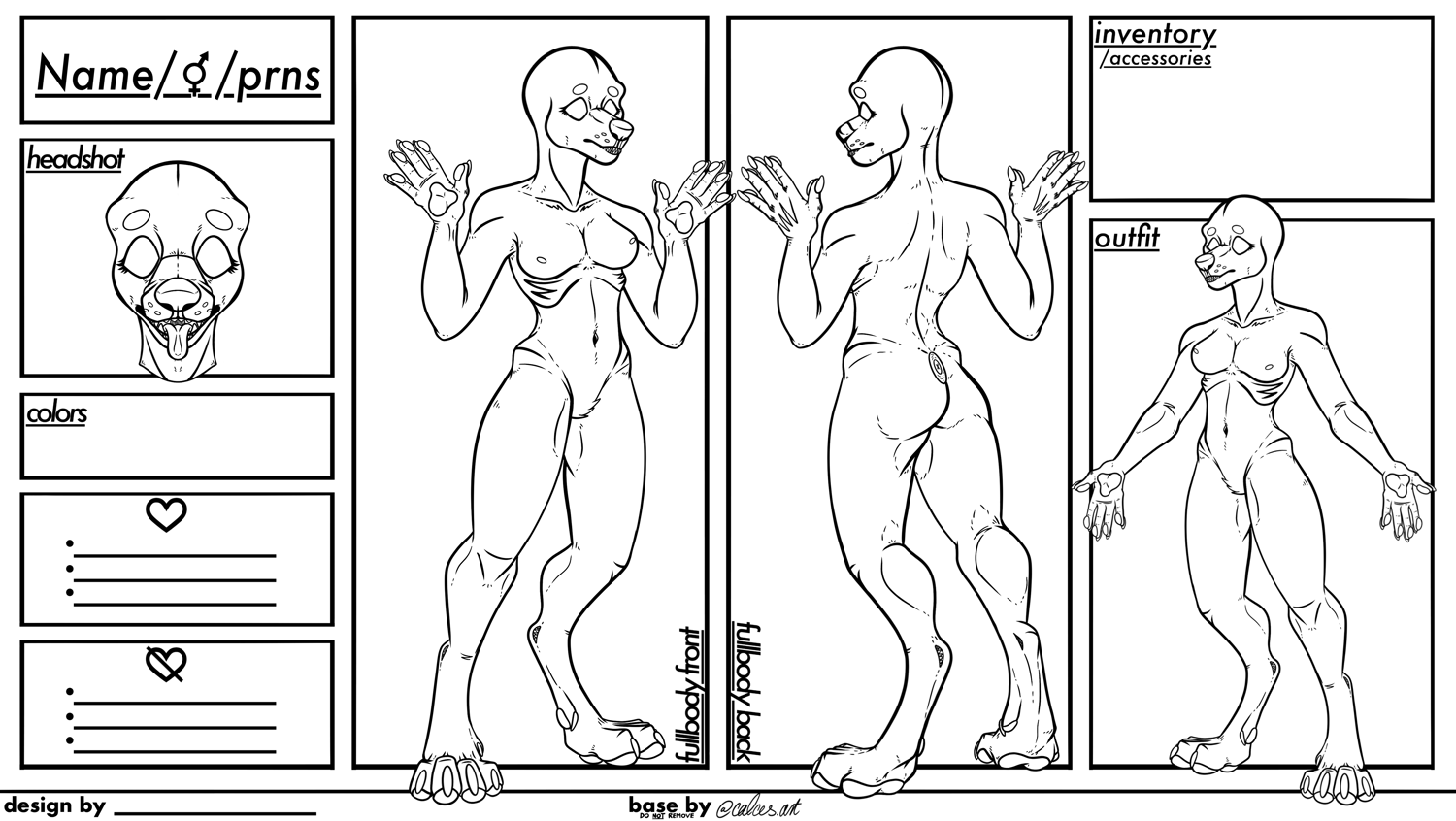 Choose-your-price reference sheet by CalcesArt. It contains a fully customizable canine base (front & back view, feminine and masculine bodies),a headshot, a reference sheet template which you can also customize & color as you wish, and a front view base for outfits!