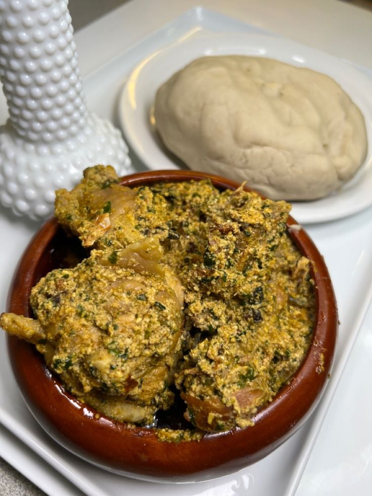 Pounded Yam and Egusi Soup – A Nigerian delicacy with melon seed soup.