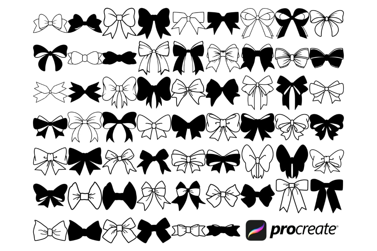- 60 Ribbon Bow stamps for Procreate
