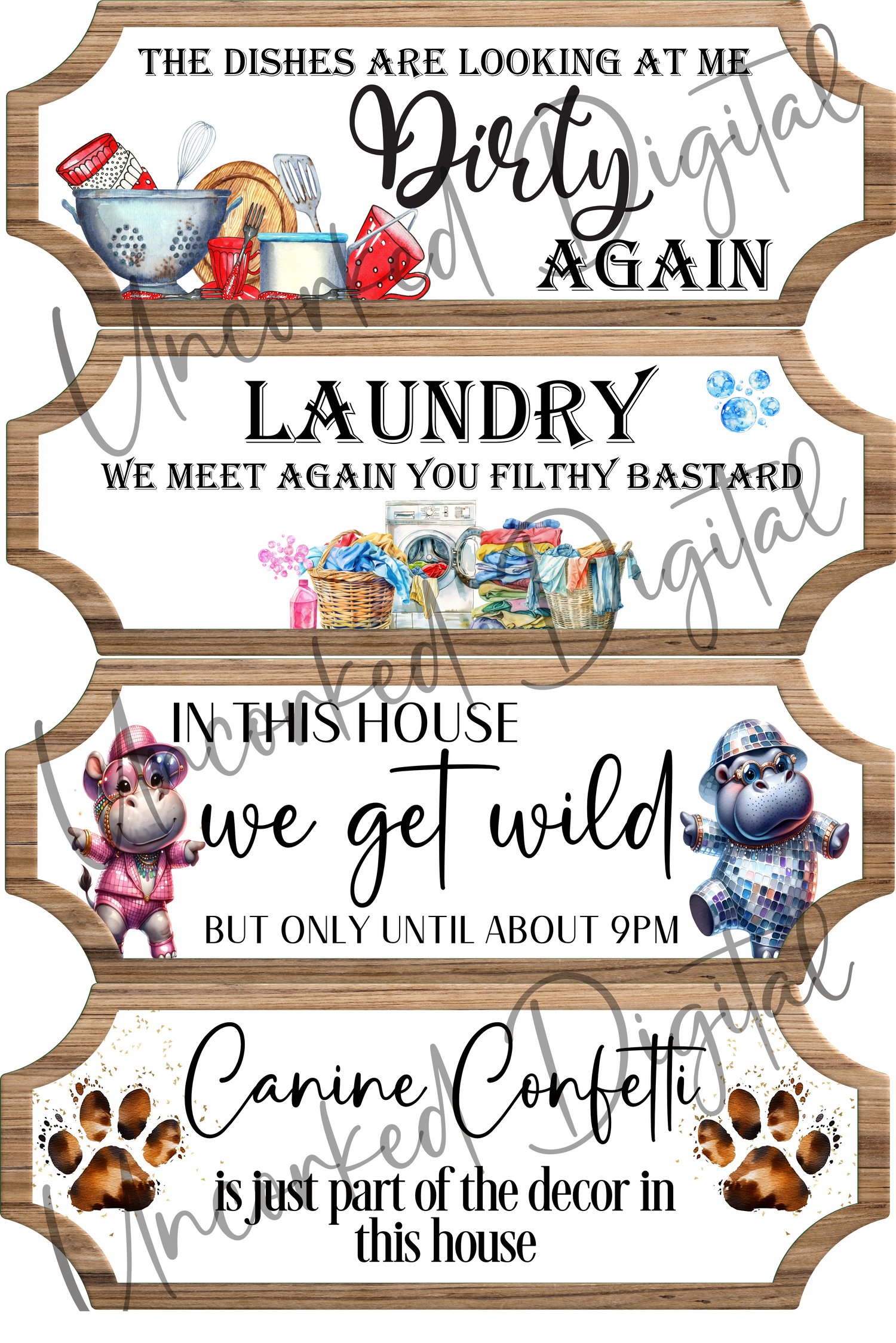 Set of 12 funny signs to fit the 28cm wavy street signs from Woodform Crafts - Product - WC1843