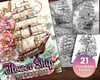21 Flower Ships Coloring Page, Adults + kids- Instant Download - Grayscale Coloring Page - Gift, Printable PDF, pirate ships. ocean, sea