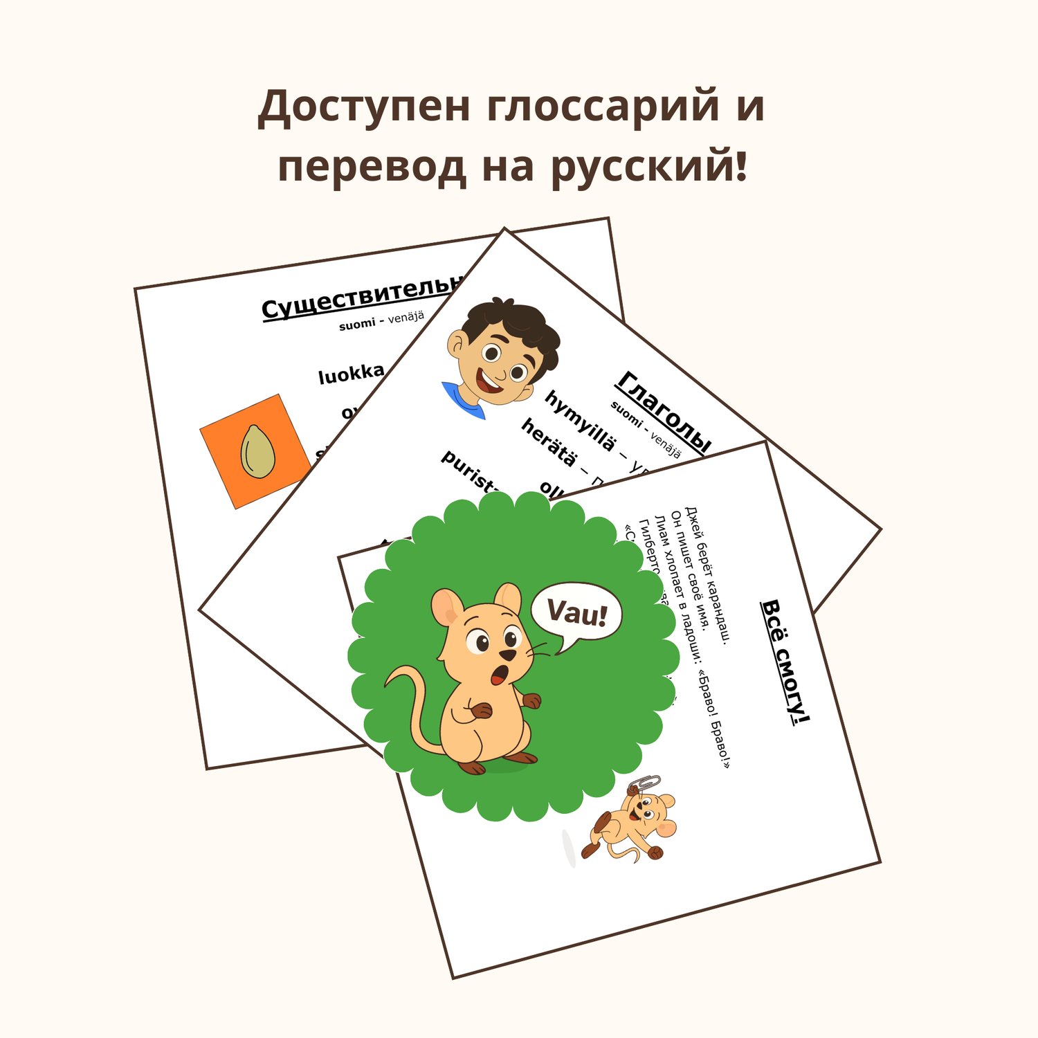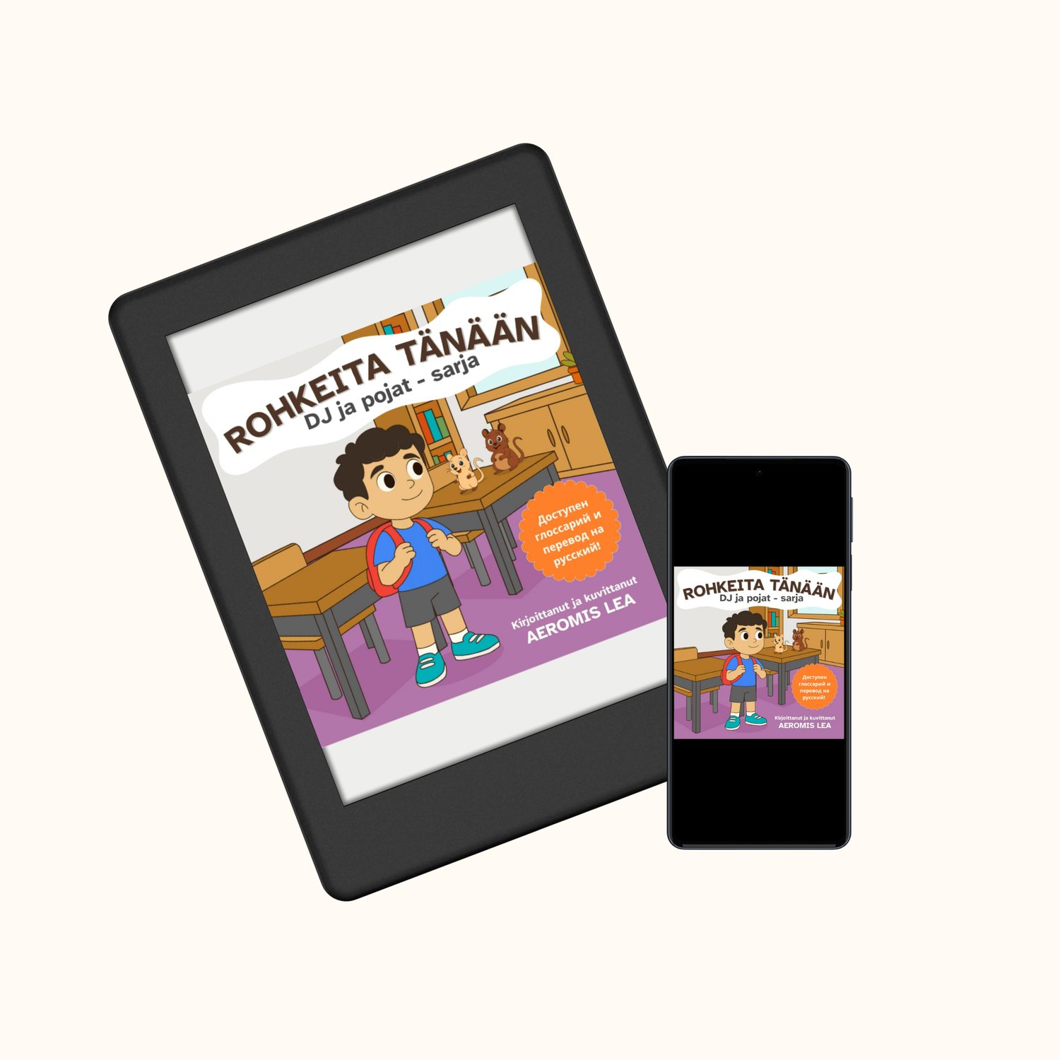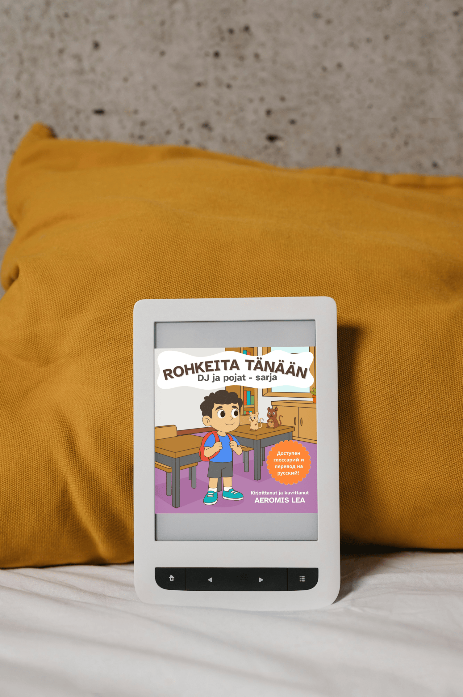 Written in easy-to-read Finnish with built-in noun and verb glossaries and a full Russian translation, this gentle story follows DJ and his gerbil sidekicks, Liam and Gilberto, as they face everyday moments with quiet bravery.