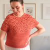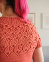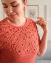 Gooseberry Tee is worked from the top down seamlessly with the round yoke. The neck is shaped with short rows. Neckline, cuffs, and hem all feature 2x1 rib. Instructions for the yoke are both charted and written out, videos for tricky techniques provided.